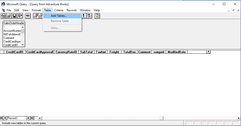 The two new tables will appear, and MS Query will even “guess” the link for “SalesOrderHeader” to “Customer”.